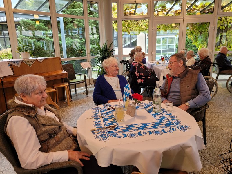 Trotz des unbeständigen Wetters ließen wir uns die gute Laune nicht verderben. In unserer Cafeteria und in geselliger Runde wurden frisch gegrillte Bratwürste mit Petersilienkartoffeln serviert, die herrlich dufteten und allen hervorragend schmeckten. Für die musikalische Unterhaltung war ebenfalls bestens gesorgt: Mit schwungvoller Musik, bekannten Volksliedern und typischen Oktoberfestklängen kam schnell Stimmung auf. Es wurde begeistert mitgesungen, geschunkelt und herzlich gelacht. Unsere Bewohnerinnen und Bewohner waren begeistert und freuen sich schon aufs nächste Fest.