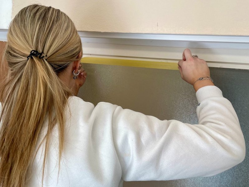 Im Frühjahr erblüht alles neu - das gilt auch für unsere Räumlichkeiten! Dank einer Kooperation mit der niederländischen Berufsschule Gilde Opleidingen sind aktuell zwölf Auszubildende der Maler/-innen und Lackierer/-innen aus der Niederlassung Roermond (NL) bei uns zu Gast. Gemeinsam mit ihrem Lehrer haben sie eine Mission: Unseren Tagesstrukturbereich zu verschönern. Während der fünf-wöchigen Aktion werden noch fünf weitere Räume (Küche, Flur, Multifunktions-, Snoezel-, und Aufenthaltsraum) bemalt und lackiert. Im Vorfeld wurde genau geplant: Neben der Umsetzung machten sich die Auszubildenden Gedanken zur malerischen Gestaltung aller Räume - sogar das Design-Team der Berufsschule war involviert.