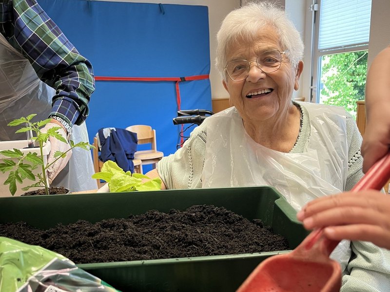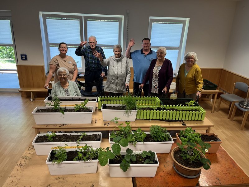 Das St. Josefshaus besuchte mit einigen Bewohnerinnen und Bewohnern den Kindergarten Kinderland. Gemeinsam mit den Kindern haben wir Gemüse und Kräuter eingepflanzt. Unsere Bewohnerinnen und Bewohner konnten ihr Wissen teilen und hilfreiche Tipps und Tricks weitergeben. Kopfsalat, Erdbeeren, Schnittlauch und Basilikum wurden voller Freude und Stolz in die vorbereiteten Beete gesetzt, gegossen und bestaunt. Alle hatten sehr viel Spaß und fanden den schönen Morgen sehr abwechslungsreich.