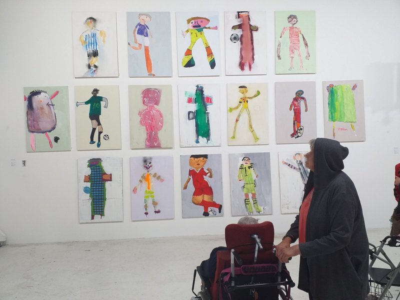 Unser Kunstatelier Studio 111 stellt ebenfalls Bilder aus, die einen Fußballer zeigen - immer im gleichen Format mit sehr hellem Hintergrund. Die Darstellung aller Bilder aneinandergereiht an der Wand beeindruck besonders und doch ist jedes Bild ein eigenes Kunstwerk mit hoher Individualität und Qualität.