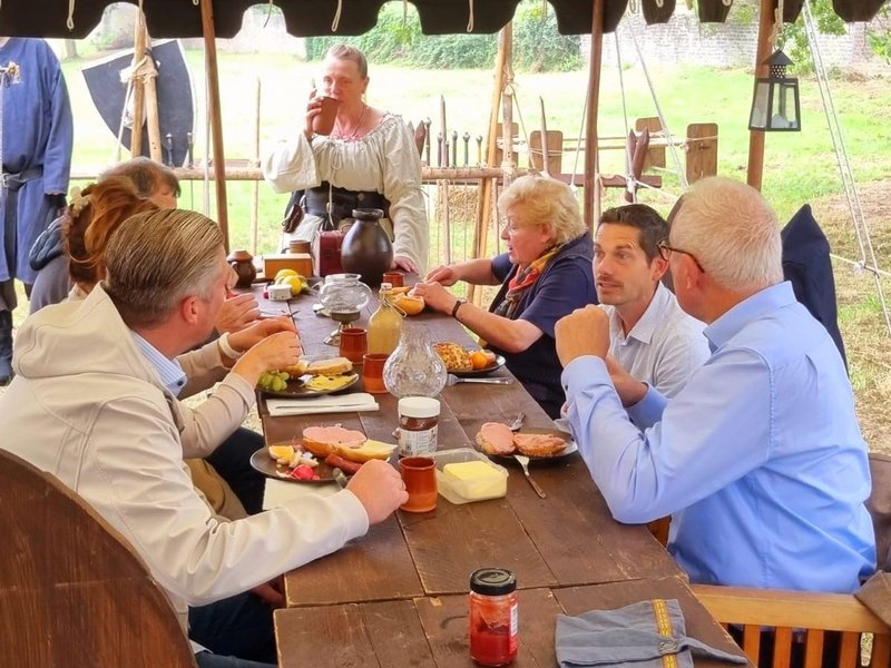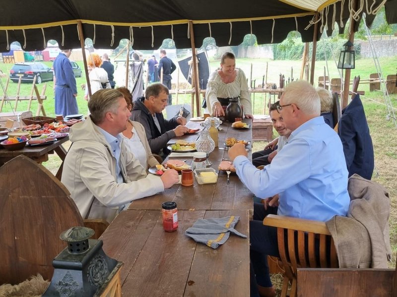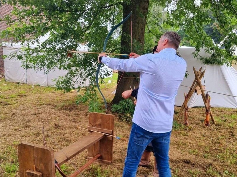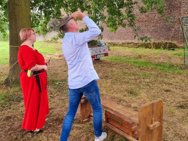 Vor dem Fest wurden alle Sponsoren zu einem mittelalterlichen Frühstück eingeladen. Neben dem Bürgermeister der Gemeinde Gangelt, dem Vorstandsvorsitzenden der Stadtsparkasse Heinsberg durfte auch unser Direktor Matthias Bonnie einen kleinen Parcours im Mittelalterstil bestreiten.