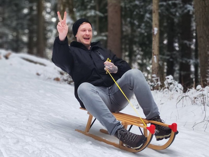 Selbstverständlich haben wir den Neuschnee im Chiemgau und Mangfalltal für eine Rodelaktion genutzt.