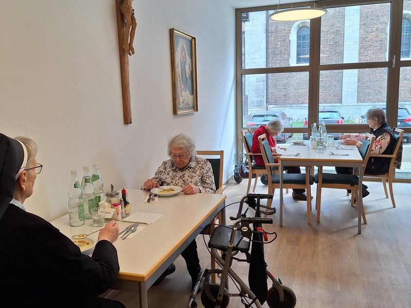 Der Festgottesdienst mit Pater Walter bildete den feierlichen Mittelpunkt des Vormittags. Die festliche Atmosphäre in der Kirche bot einen wunderbaren Raum für Besinnung und Dankbarkeit. Nach der Messe füllte sich der große Speisesaal schnell zur traditionellen Agape. Ein herzliches Dankeschön gilt unserem Küchenchef Raul Deschu, der uns heute mit einer meisterhaften Fastensuppe verwöhnt hat. Dass „Fastenspeise“ keineswegs Verzicht auf Genuss bedeutet, bewies Raul mit seiner Kreation, die bei allen Gästen für Begeisterung sorgte. Bei dampfenden Tellern und angeregten Gesprächen wurde gelacht, diskutiert und spürbar Gemeinschaft gelebt.