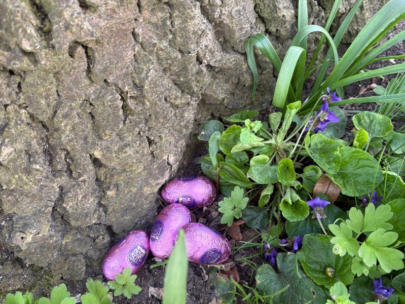 Am Ostersonntag durfte im Park gesucht werden-der Osterhase hatte reichlich Eier und Süßigkeiten versteckt, auch gefilzte Eier aus Märchenwolle hingen an den Bäumen im Park.