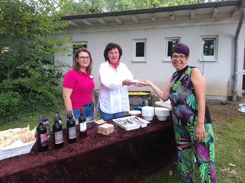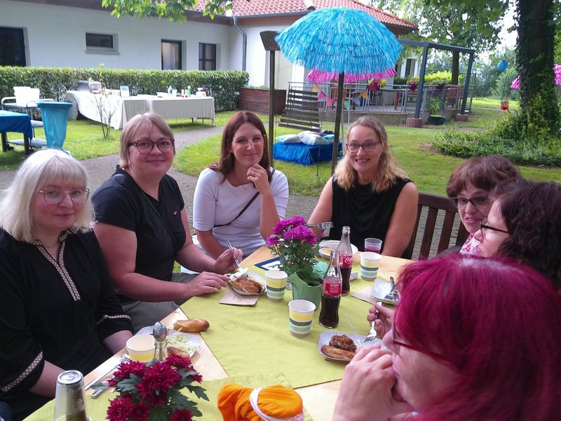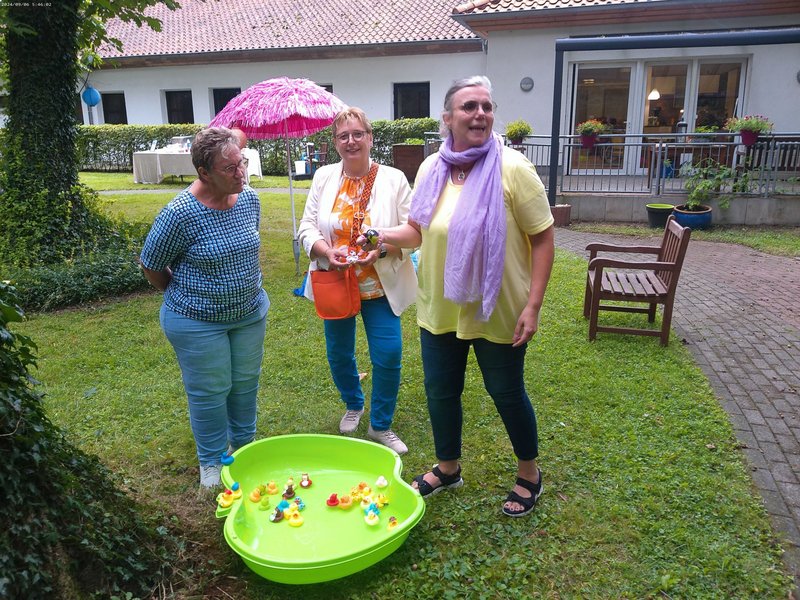 Bei sonnigem Wetter und ausgelassener Stimmung ließen sich alle die leckeren Speisen und Getränke schmecken. Ein Highlight war eine Tombola, bei der jede Teilnehmerin und jeder Teilnehmer ein Entchen aus dem „Teich“ fischen durfte.