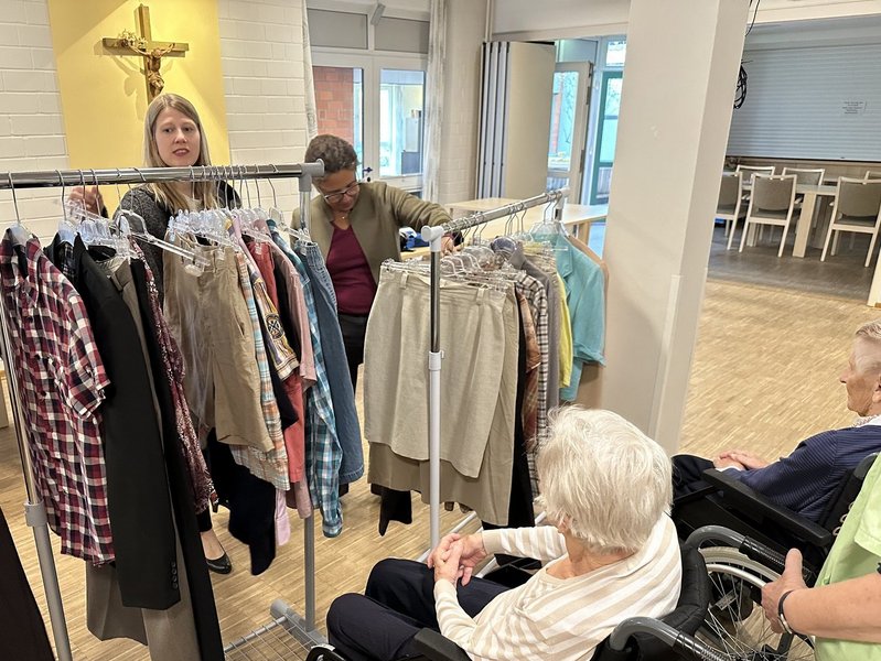 Entgegen den allgemeinen Regeln stets ein eigenes Stück für ein neues Stück einzutauschen, durften unsere Bewohnerinnen und Bewohner aufgrund des näher rückenden Abschlusses dieses Nachhaltigkeitsprojektes die mitgebrachte Kleidung behalten.