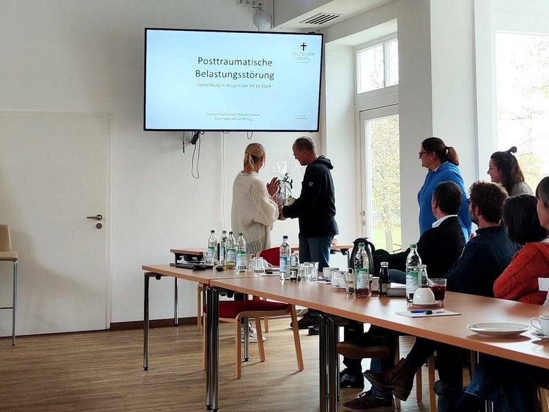 Drei unserer Mitarbeiterinnen sind der Einladung unserer Hauptgeschäftsstelle, Team Marketing/Recruiting und Mitarbeiterqualifizierung, gefolgt. Für unsere Fachkräfte aus dem Bereich Bezugspädagogik und Arbeitstherapie stand ein Vortag von Marcus Breuer, Dipl. Psychologe, approbierter Psychotherapeut und Leiter der Würmtalklinik in Gräfelfing auf dem Programm, Thema: Posttraumatische Belastungsstörungen, insbesondere im Kontext von Abhängigkeitserkrankungen.