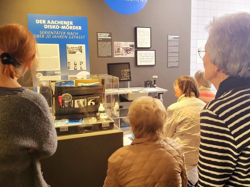 Kulturelle Erlebnisse bringen Menschen jeden Alters zusammen – besonders auch im höheren Alter fördern sie Gesundheit, Lebensfreude und Gemeinschaft. Vor Kurzem besuchte das Quartiersnetz Laurensberg die Ausstellung „Tatort Heimat! True Crime aus der Region“ im Centre Charlemagne in Aachen. 11 Teilnehmerinnen und Teilnehmer erlebten eine spannende Führung durch die Geschichte von Kriminalität und Gerichtsbarkeit im Grenzraum Deutschland, Belgien und Niederlande.