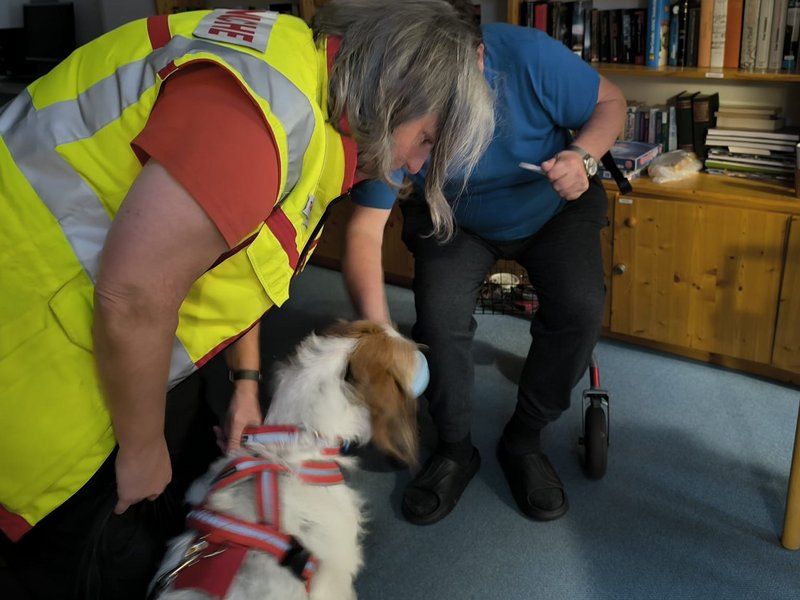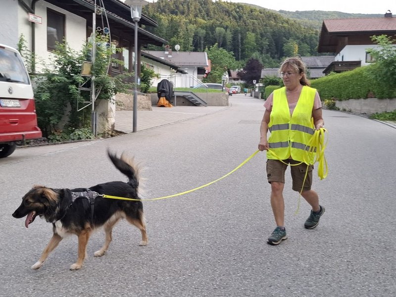 Karin Gruber, unsere Mitarbeiterin im Bereich Küche/Gastro, ist aktives Mitglied bei der Rettungshundestaffel. Ihr Hund "Torres" ist bei unseren Bewohnerinnen und Bewohnern sehr beliebt - ein treuer und kluger Begleiter bei Spaziergängen und zugleich ein ausgebildeter Rettungshund.