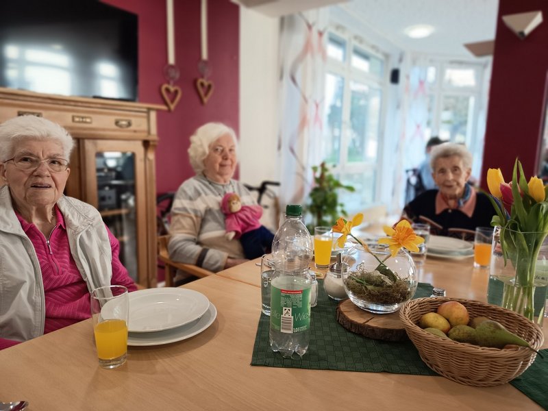 Zur Feier des Tages wurde ein besonders leckeres Mittagessen für alle Bewohnerinnen und Bewohner zubereitet. In gemütlicher Atmosphäre kamen wir in der Eingangshalle zusammen, um zu essen, zu lachen und den besonderen Tag miteinander zu teilen. Das gemeinsame Essen steht sinnbildlich für das Miteinander, das in unserem Haus einen hohen Stellenwert hat – ganz im Sinne des heiligen Josef, der als Beschützer der Familie gilt und für Bescheidenheit und Zuverlässigkeit steht.