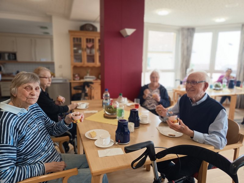 Der Mittwoch stand ganz im Zeichen des Genusses: Gemeinsam wurde fleißig Kuchen gebacken, und schon bald duftete das gesamte Haus nach frischem Gebäck. Am Nachmittag wurden unsere Bewohnerinnen und Bewohner „wieder flügge“ und machten sich auf den Weg zum Café Rothenberg, wo ein gemütlicher Kaffee-Nachmittag stattfand. Zum Mittag wurde in der Eingangshalle zudem frischer Spargel serviert – ein Klassiker der Saison.