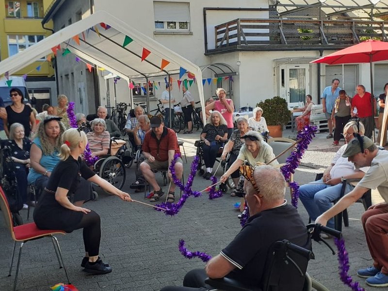 Nachmittags sorgte die Hit-Parade mit bekannten Volksliedern für ausgelassene Stimmung – es wurde gesungen, geklatscht und die Bewohner/-innen waren erstaunlich textfest.