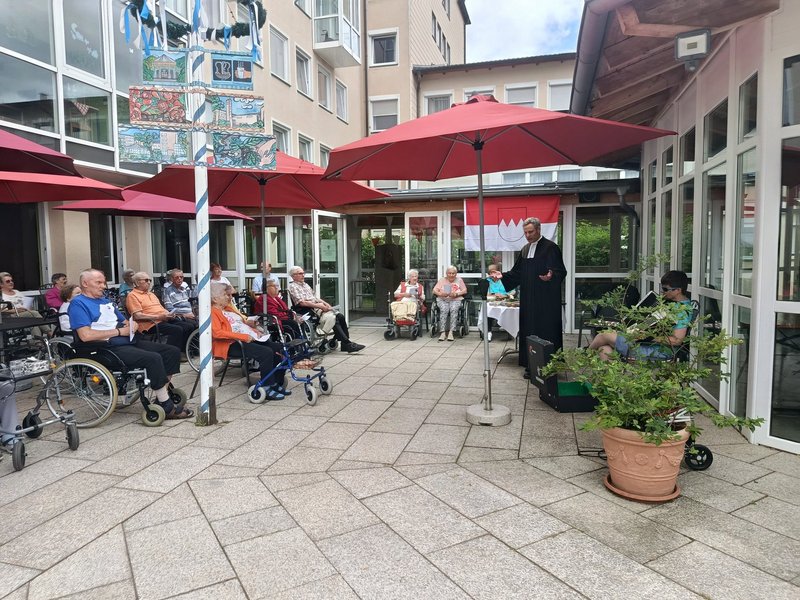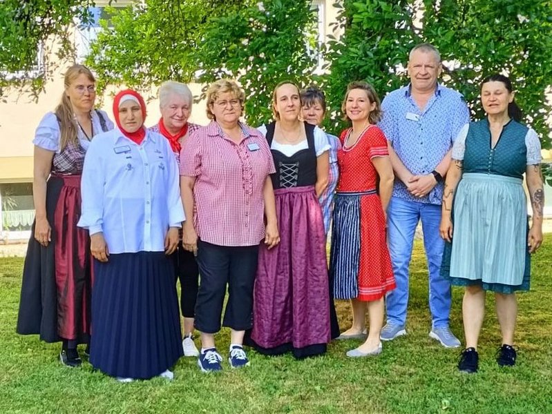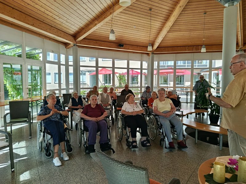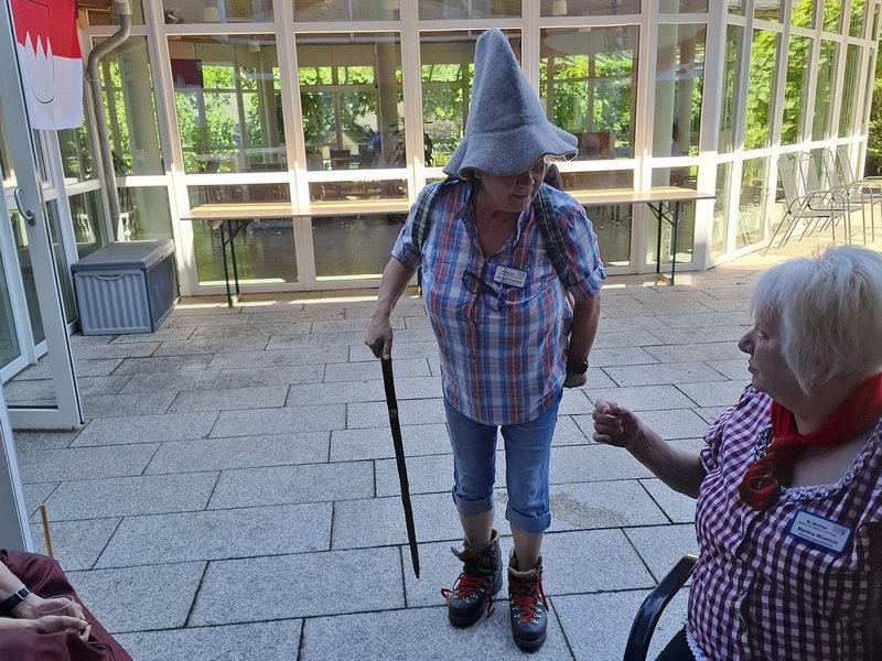 Die Gottesdienste fanden diese Woche im Pavillon und im Freien statt - eine schöne Abwechslung für alle. Den Abschluss der Woche bildete unser Sommerfest, natürlich im Dirndl. Trotz Hitze wurde ordentlich das Tanzbein geschwungen. Das schöne Wetter lockte am Nachmittag noch unseren „Fichtelgebirgler“ hervor, der uns von seinen Wanderungen berichtete.