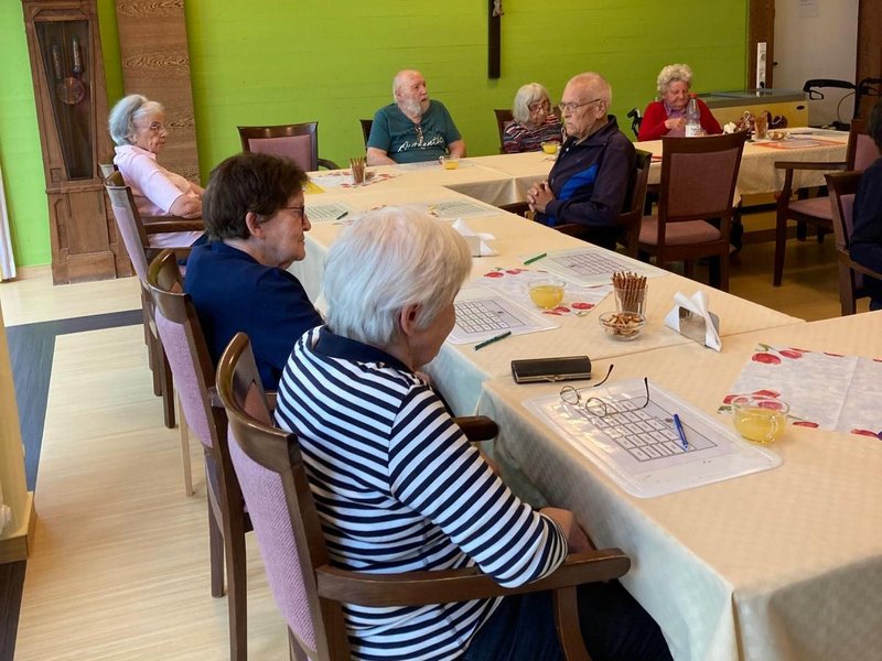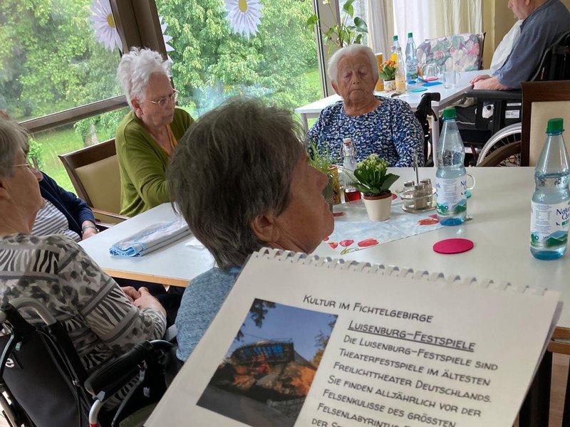In unserer Urlaubswoche im Haus reisen wir gedanklich ins Fichtelgebirge. Wir packen in unseren Koffer alles was wir benötigen, um diese atraktive Ferien und Wanderregion zu erkunden: Dabei haben wir am ersten Tag der Urlaub im Haus Woche viel Wissenswertes über das Fichtelgebirge gelernt: welche berühmten Persönlichkeiten aus der Region kommen, welche Sehenswürdigkeiten und Freizeitaktivitäten es dort gibt. Ganz wichtig ist es dem Team der Betreuung dabei, den persönlichen Blick auf die Bewohner zu richten. Liebevoll und individuell geht die Betreuung auf die persönlichen Erinnerungen der Bewohner ein. Heute morgen wird viel Wissenswertes vermittelt heute Nachmittag setzt die Betreuung auf eigenes Wissen, beim Bingo spielen rund um das Thema Fichtelgebirge.Bei Bowle und Knabbergebäck können die Bewohner in lockerer Runde ihr Wissen abrufen und kund tun.Zu gewinnen gibt es sogar auch eine Kleinigkeit. Ein aufregender erster Tag in unserer Themenwoche.
