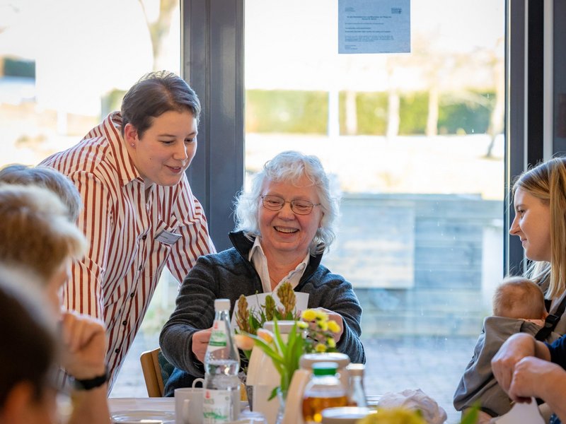 Ein festlicherer Ort für eine Abschiedsfeier lässt sich schwer finden: In der schön dekorierten Orangerie trafen wir uns, um Karin Reiter, unsere langjährige Hauswirtschafts- und Küchenleitung, gebührend zu feiern. Über 23 Jahre war sie Teil unseres Teams und geht nun in den wohlverdienten Ruhestand. In verschiedenen Ansprachen konnten wir uns an viele schöne wie lustige Momente zurückerinnern und unserer langjährigen Kollegin für ihr großes Engagement und ihre hervorragende Arbeit danken. Im Anschluss ließen wir den Nachmittag mit viel Kaffee, Kuchen und guten Gesprächen ausklingen. Wir wünschen Karin Reiter das Allerbeste für ihren Start in den neuen Lebensabschnitt!