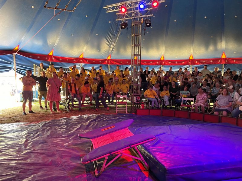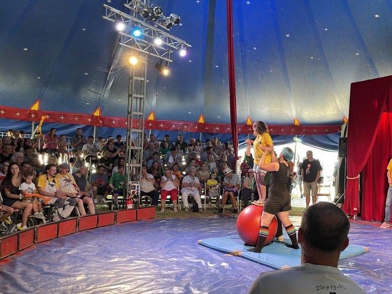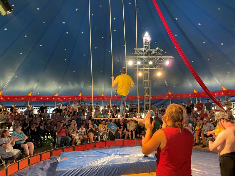 Als der Einlass startete, waren wir alle freudig überrascht: Die Vorstellung war ausverkauft. Das steigerte die Anspannung der Artistinnen und Artisten nochmal um so mehr. Die Vorstellung startete mit einer Trampolinnummer, gefolgt vom Seiltanzen, Jonglage und dem Trapez. Es war unglaublich, was die Artistinnen und Artisten in dieser Woche alles gelernt haben. Sie wuchsen über sich selbst hinaus und legten eine unglaublich tolle Aufführung hin.