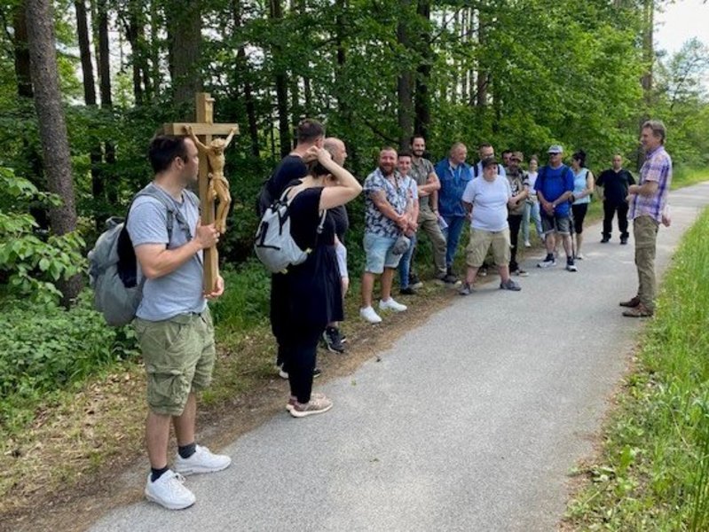 Aber nicht nur das machte diesen Tag zum Highlight, sondern vor allem die Abwechslung zwischen dem Gehen in Schweigen, seinen eigenen Gedanken zuzuhören, zu beten und zu singen. Besonders bewegend fanden die Wallfahrer/-innen die Andachten von Andreas Frey. Er gehört zum Seelsorge-Team der Deutscher Orden Ordenswerke und bereicherte diesen Tag mit Gesang, Gitarre und Gebet. Durch die christlichen Impulse und sein Motto, das dieses Ereignis begleitete - Maria, die versorgt, und Maria, die Versorgte – konnten sich alle durch eigene Erfahrungen selbst mit einbringen und auf Zettel nieder schreiben, wo sie selbst versorgt wurden in ihrem Leben und durch wen.