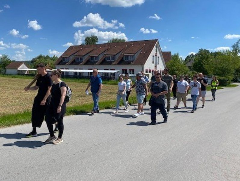 Eine langjährige Tradition in der Laufer Mühle: Die Wallfahrt im Marienmonat Mai für jeden Interessierten, der in der Laufer Mühle wohnt oder arbeitet. Zu Fuß wandern wir von der Einrichtung 7 km zum Kreuzberg nach Hallersdorf, mit Zwischenstop in der kleinen Kapelle in Haid und der Kirche in Willersdorf. Wir waren wieder mit trockenem mildem Wetter versorgt und so konnten wir uns gedanklich mit Maria, der Mutter Jesu auf den Weg machen.