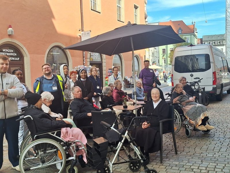 Begleitet von zahlreichen Kolleginnen und Kollegen startete unsere Gruppe bei strahlendem Sonnenschein. Unterwegs bot sich nicht nur Raum für persönliche Gespräche, sondern auch für das bewusste Erleben der besonderen Stimmung, die die Prozession mit sich brachte. Durch die belebten Gassen Regensburgs führte uns der Weg hin zu einem Ort der Ruhe und Besinnung.
