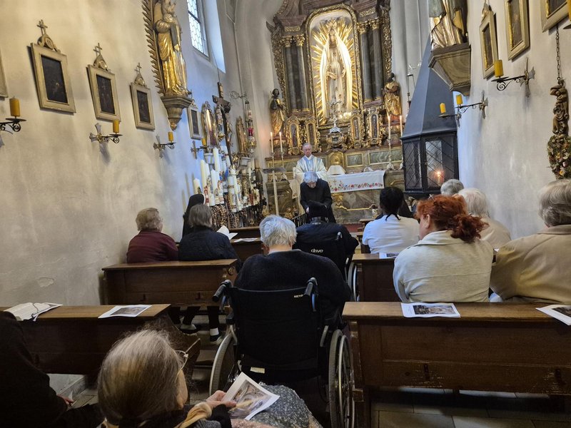 In der kleinen, aber ehrwürdigen Maria-Läng-Kapelle zelebrierte Pfarrer Huber eine feierliche Heilige Messe. Seine einfühlsamen Worte zu Beginn stimmten uns nachdenklich und schufen einen Raum der Verbundenheit. Es war ein besinnlicher Moment, der unsere Gemeinschaft spürbar stärkte.