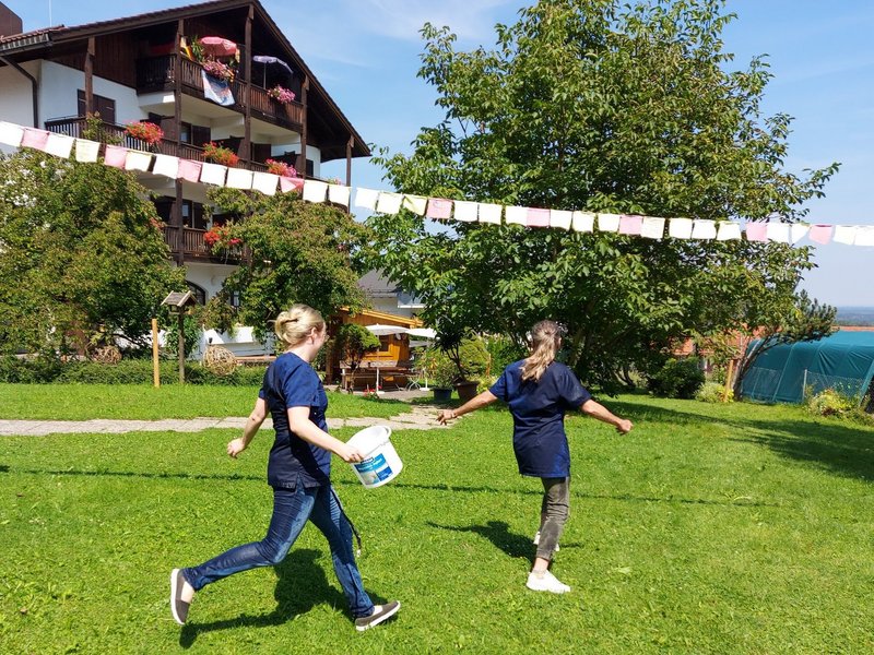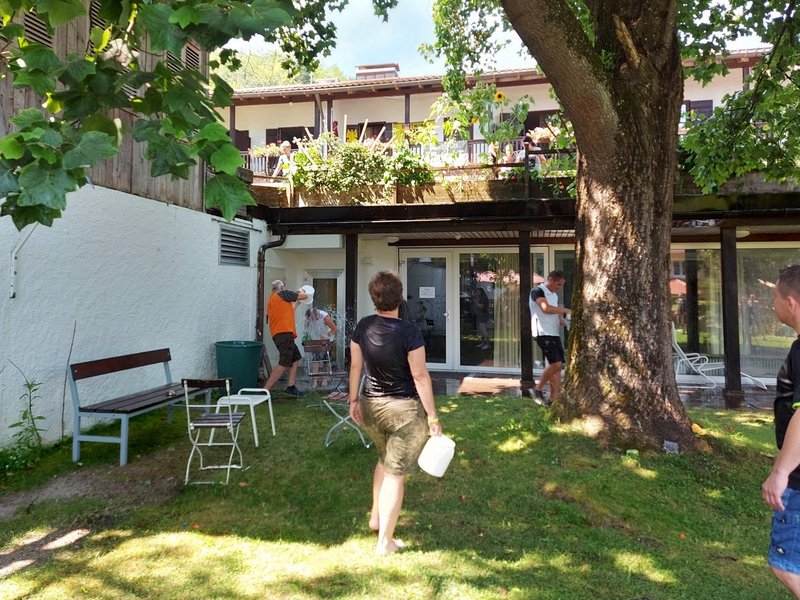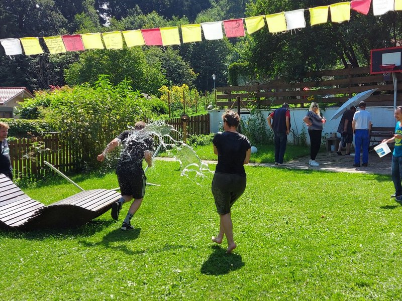 Für den heutigen, heißesten Sommertag, hat sich das Betreuungsteam eine spontane Wasserschlacht ausgedacht.