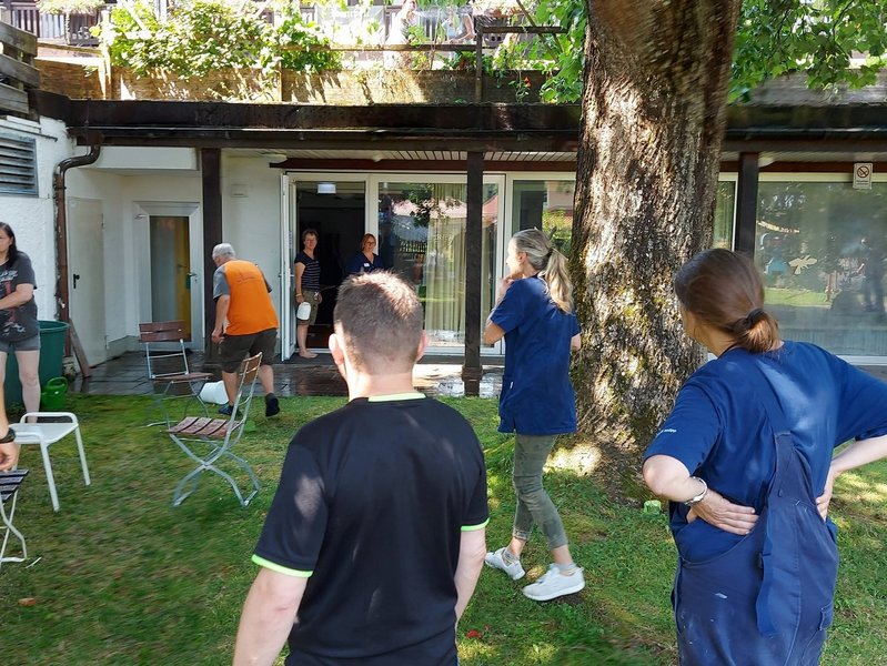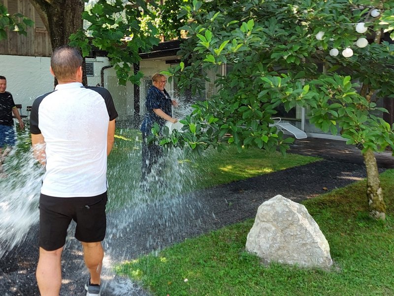 Es war eine riesige Gaudi für uns alle und nicht nur die Bewohner/-innen genossen das kühle Nass, auch unsere Mitarbeiter/-innen hat es "kalt" erwischt. Teilweise schauten wir wie "begossene Pudel" aus.