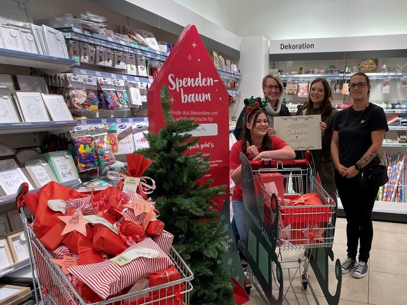 An einem Weihnachtsbaum im Drogeriemarkt konnten die individuellen Wünsche unserer Bewohner/-innen aufgehangen werden. Die Kundinnen und Kunden von Rossmann haben durch gezielte Spenden die Wünsche erfüllt und damit sehr viel Freude bereitet. Alle 75 Bewohnenden des Haus Maria Helferin bekommen durch diese tolle Spendenaktion ihre persönlichen Wünsche erfüllt.