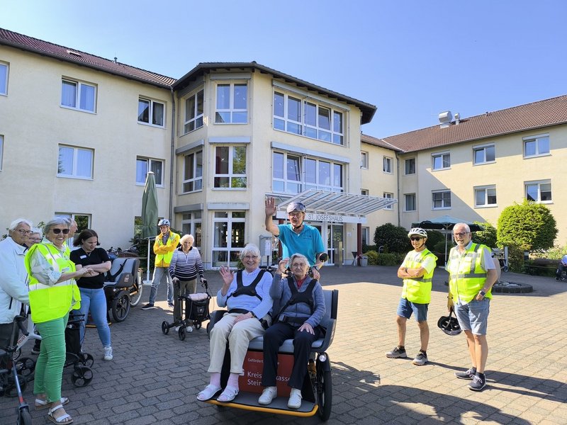 Die geschulten ehrenamtlichen Piloten halfen beim Ein- und Aussteigen und nutzten die kurzen Probefahrten, um weitere praktische Erfahrungen zu sammeln. Die Resonanz war sehr positiv – einige wollten gar nicht mehr aussteigen. Das Projekt befindet sich im Aufbau; es werden noch Rikschas, eine Trägerorganisation und weitere ehrenamtliche Fahrer gesucht. Ein Rikscha-Standort am St. Josefshaus ist fest eingeplant.