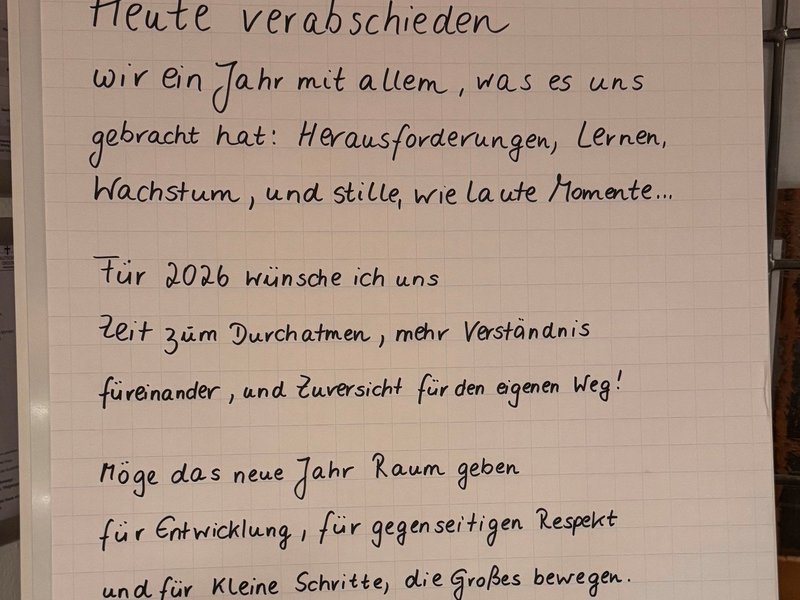 Unsere Bewohnerin Frau Sandra F. hat liebevolle Worte für den Jahreswechsel gefunden und für die Gemeinschaft vorgetragen.