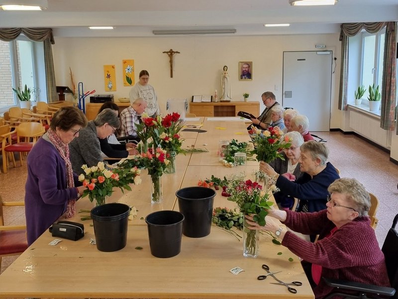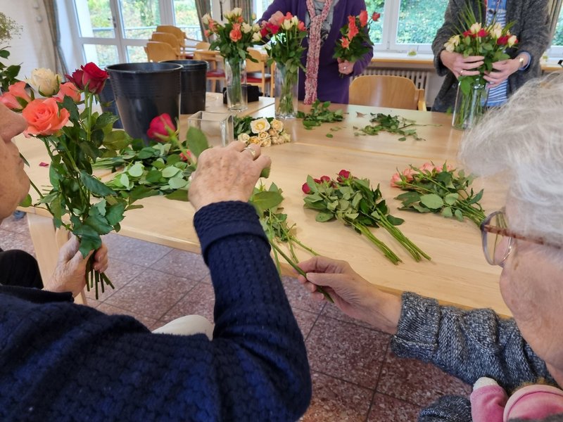 Am Montag der dritten Oktoberwoche trafen sich viele Bewohnerinnen und Bewohner zum Herstellen von Dekoration für das Haus sowie Geschenken für die immobilen Bewohnerinnen sowie Bewohner. Man traf sich im Fernsehsaal, um dort z.B. beim Binden von Blumensträußen gemeinsam aktiv zu werden. Alle erfreuten sich über die neu hergestellte Dekoration und das Verschönern des St. Josefshauses.