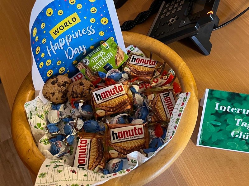 Unsere Verwaltungsleitung, Monika Schöffel, hat immer ein Auge auf das Wohl Ihrer Kolleg/-innen und Mitarbeitenden. Für sie war klar: Am "World Happiness Day" darf die Extraportion Schokolade für das Betreuungsteam nicht fehlen! Denn sogar Studien beweisen, dass Schokolade glücklich macht. Es sind kleine Gesten, die uns aber allen sehr gut tun. Danke liebe Monika, für dieses spontane süße Highlight!
