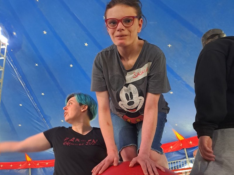 Der Zirkus Dobbelino war mit vier professionellen Zirkuspädagog/-innen vor Ort und brachte nicht nur beeindruckende Kunststücke, sondern auch jede Menge Mitmach-Magie mit. Nach einem stärkenden Frühstück ging es täglich ins Training – schwungvoll, schweißtreibend und mit ganz viel Herzblut. Ob Jonglage, Akrobatik oder das wagemutige Trapez: Unsere Teilnehmenden wagten sich an alles heran.
